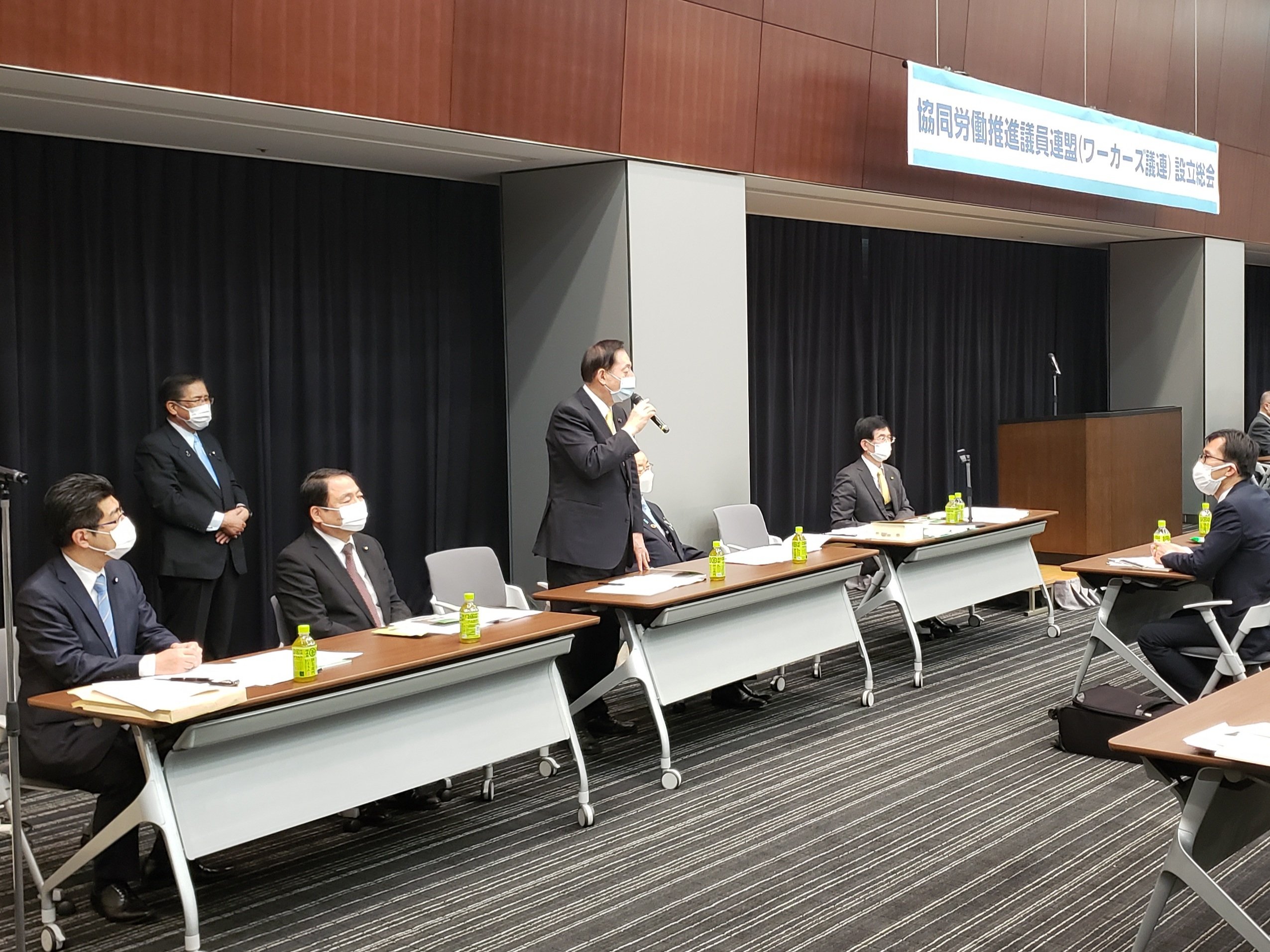 みんなで出資をし、みんなで働き、みんなで運営するという新しい「協同労働」「労働者協同組合」の仕組みがスタート――。6日、超党派の「協同労働推進議員連盟」(ワーカーズ議連)の設立総会が開催されました。昨年12月の「労働者協同組合法」(議員立法)の成立を受けて設立されたもの。公明党が強く推進してきたもので、私が顧問、桝屋敬悟衆院議員が共同代表に就きました。