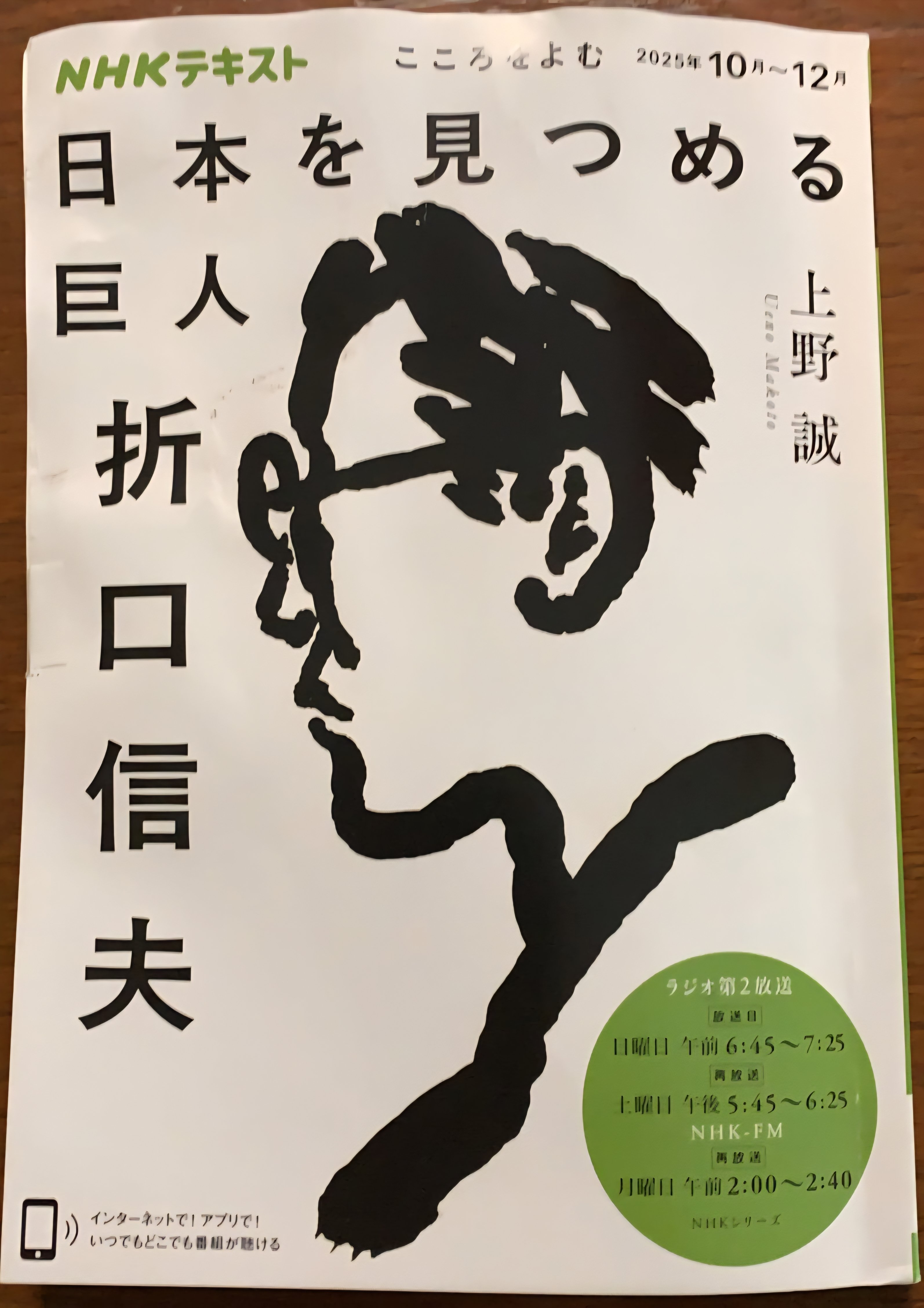 欧米の文明・文化を急速度に受容した明治日本。しかしそのなかで、1900年を前後して、「日本とは、日本人とは」を問いかけ、世界に発信した知識人がいた。内村鑑三の「代表的日本人」(1894年)、新渡戸稲造の「武士道」(1899年)、岡倉天心の「茶の本」(1906年)、そして牧口常三郎(後に創価学会初代会長)の「人生地理学」(1903年)。これを日本文化論の第一世代とすれば、「鈴木大拙、和辻哲郎、柳田國男、折口信夫が第二世代」「彼らは上層よりも下層部の人々の生活を、都市よりも田舎の人々の生活を中心とした日本文化研究を行った」と言う。それは「近代の学問が止めどもなく細分化する『切り裂く知性』なのに対し、人格形成の『包み込む知性』」であり、折口信夫は国文学研究、民族学研究、芸能研究、宗教研究、神道研究、さらに釈迢空の名の歌人であり、小説も珠玉の評論もする巨人であった。それはいずれも、神と人との関係を観察してゆくことである。また宗教文化を肯定的に捉えるものであり、日本の伝統文化を無視して進む近代社会への抗議者でもあった。