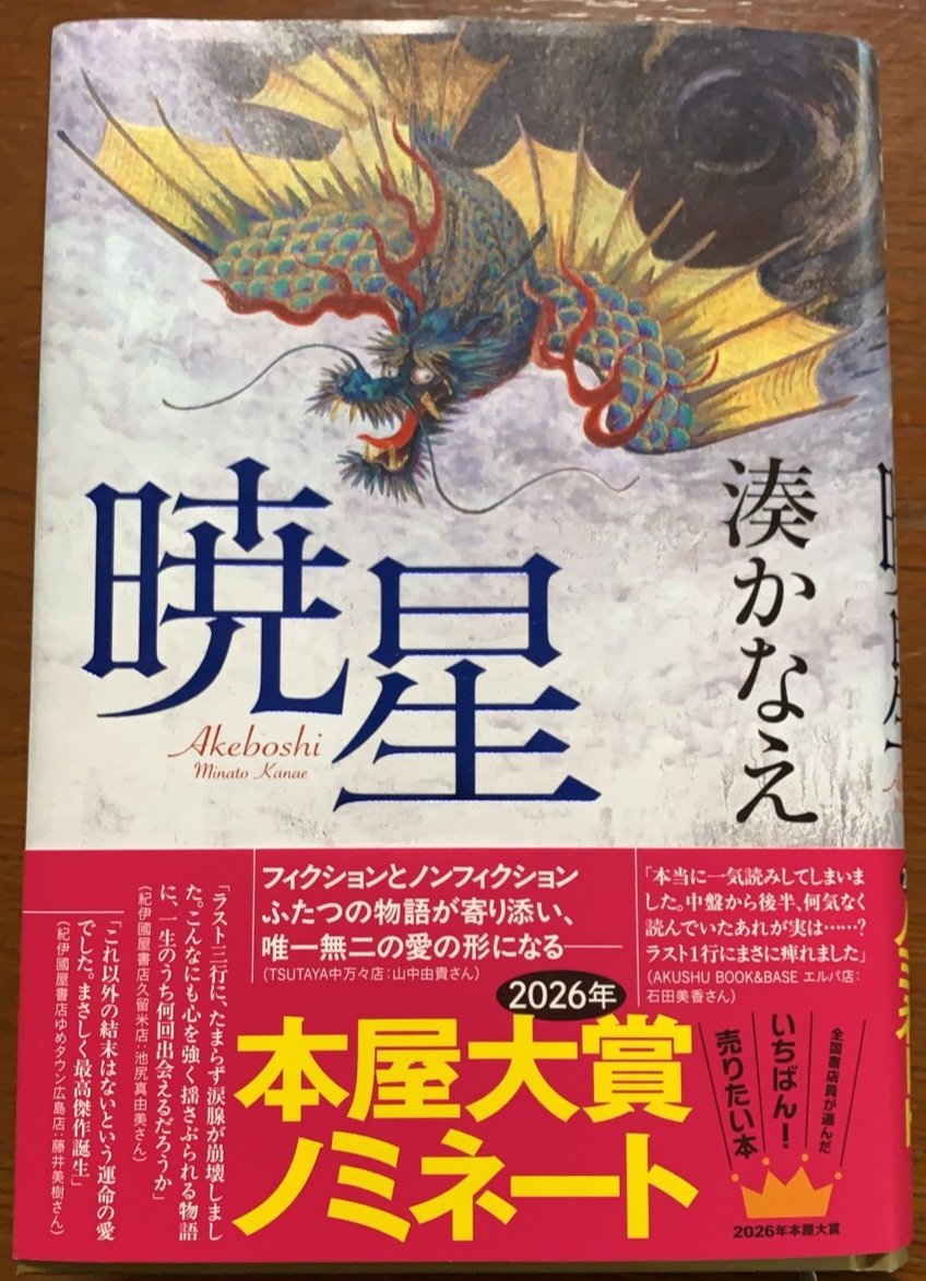 「暁星(あけぼし)」――暁に輝く金星。「金星は星の中では一番明るいが、明け方と夕方しか見えない。明けの明星、宵の明星と呼ばれるように常に太陽と一緒に輝いている。長瀬暁良の著作『暁闇』は夜明け前の暗闇という意味で、夜明け前が一番暗い。だけど必ず日は昇る、人生の闇を乗り越え、暁の空に金星を探そうというメッセージが、ビシビシ伝わってくる作品」・・・・・・。主人公となるのは、暁(小説部分では暁生)と金星。ニ人ともこの小説「暁闇」を感動して読んだが、文壇において暁の父は弾圧され自殺。ニ人の母親は共に愛光教会にのめり込む。暁の母は家を売るほどの多大な献金を、金星の母は娘を教団の上位の道へと必死に押し上げていく。金星は逃げようとしても、ますますがんじがらめになっていく。窒息するような中での暁と金星の結びつく愛・・・・・・。